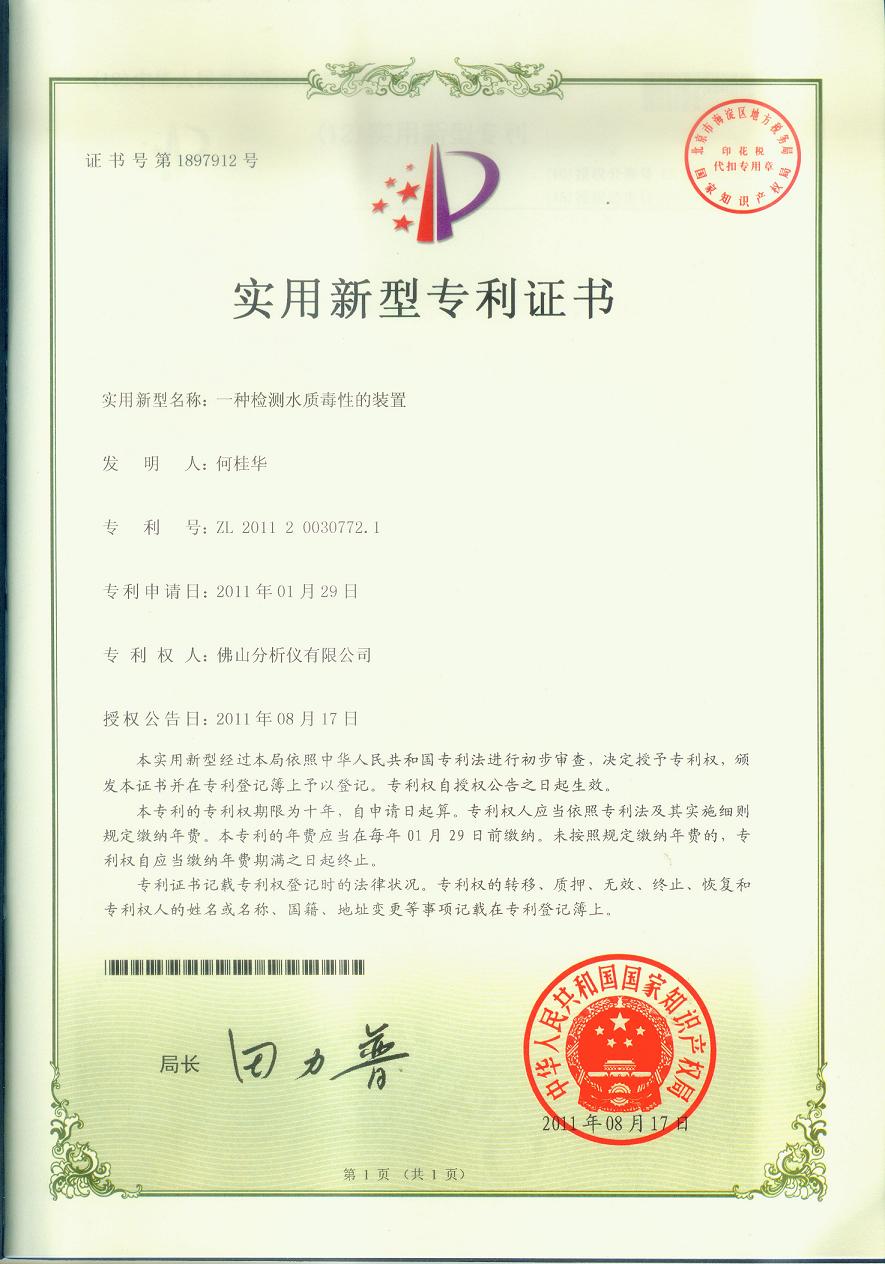 實用新型專利:一種檢測水質(zhì)毒性的裝置