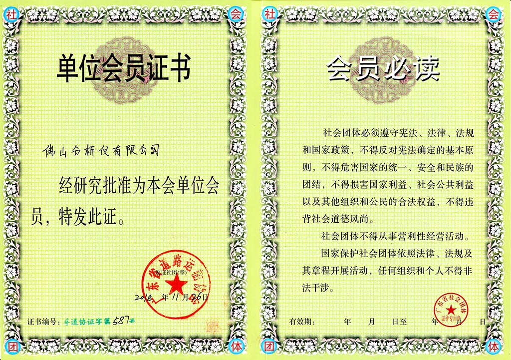 廣東省道路運(yùn)輸協(xié)會(huì)單位會(huì)員證書