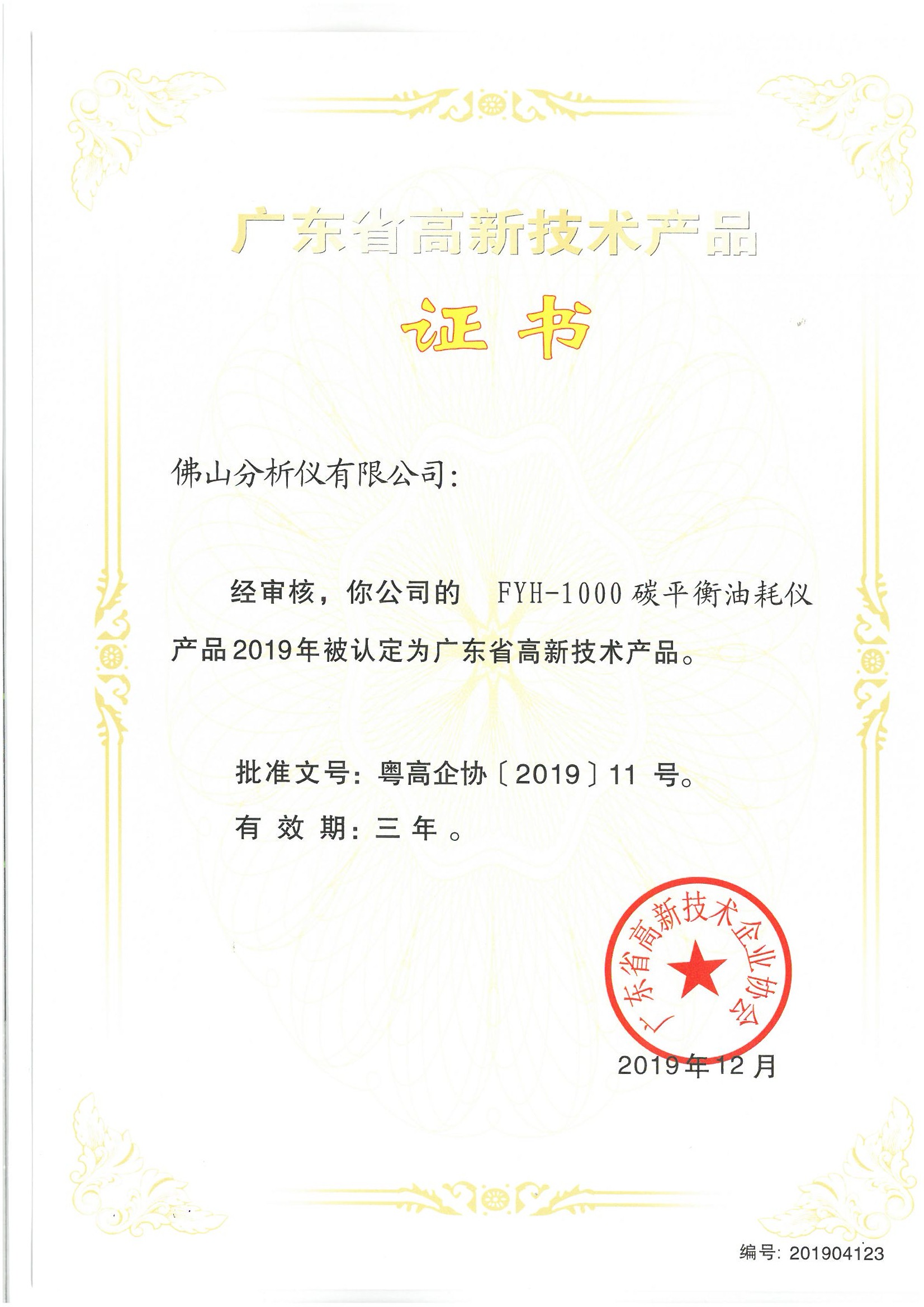 高新技術(shù)產(chǎn)品證書(FYH-1000碳平衡油耗儀)