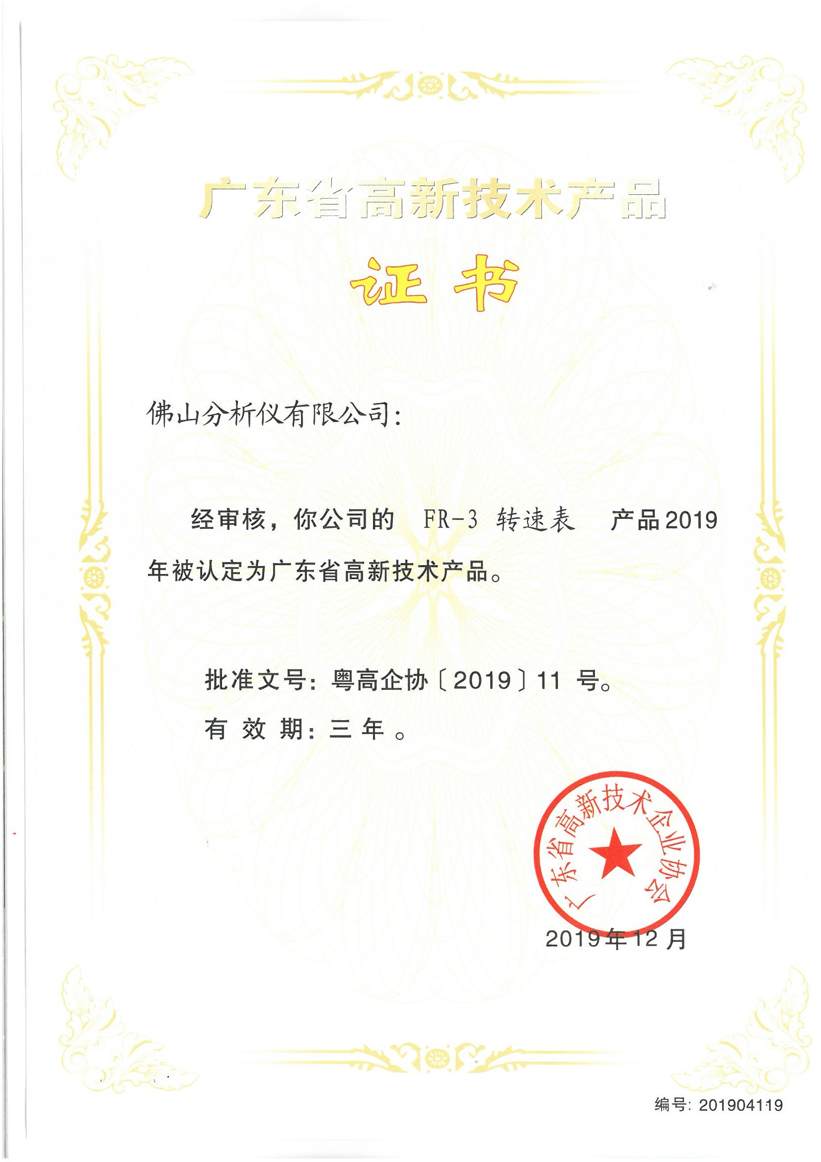 高新技術(shù)產(chǎn)品證書(FR-3轉(zhuǎn)速表)