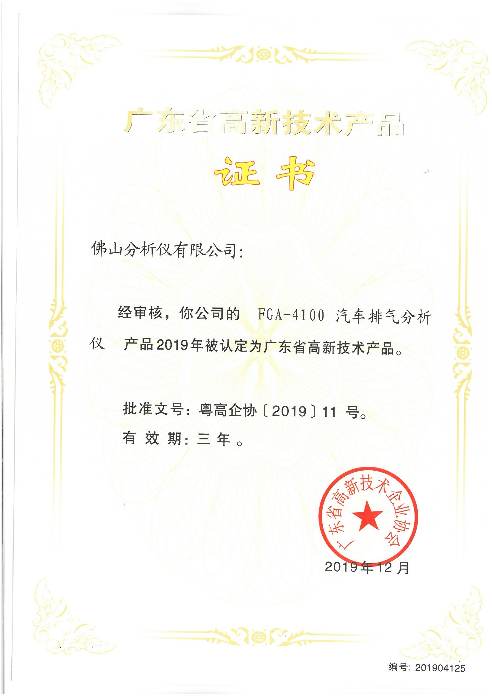 高新技術(shù)產(chǎn)品證書(FGA-4100汽車排氣分析儀)