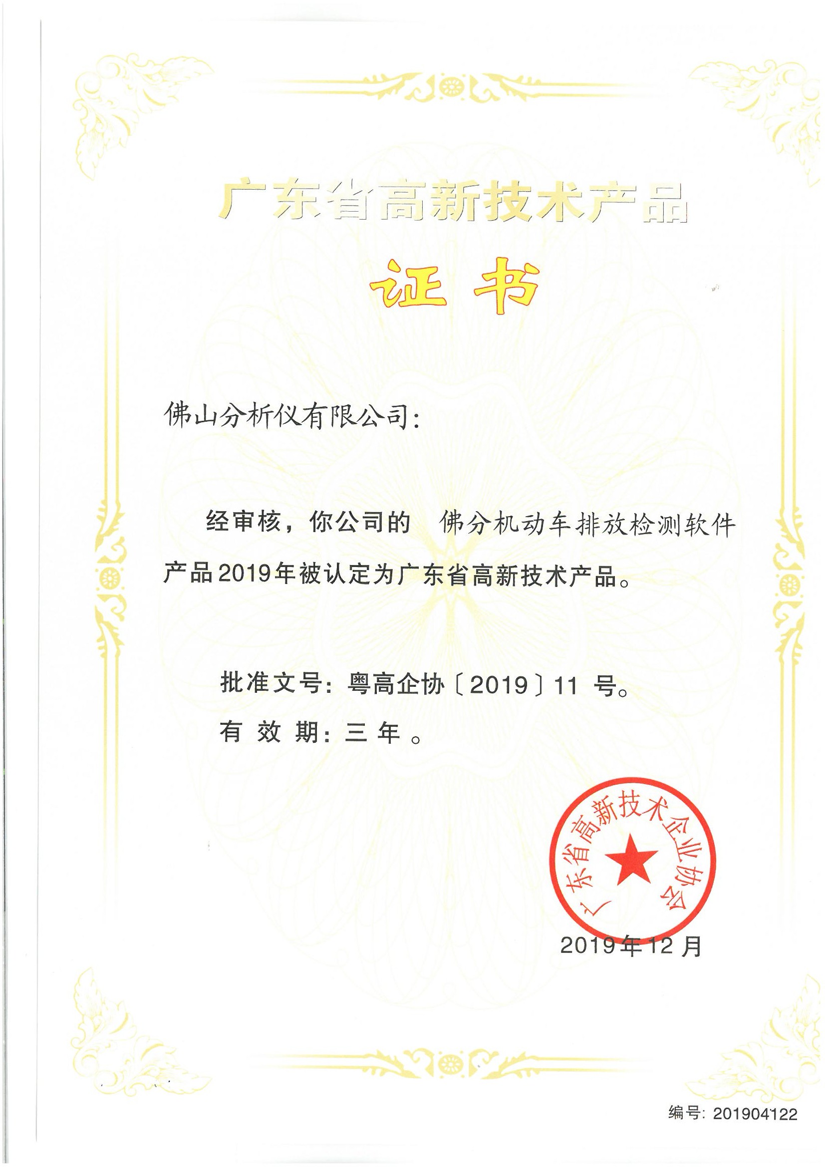 高新技術(shù)產(chǎn)品證書(佛分機(jī)動(dòng)車排放檢測(cè)軟件)
